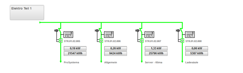 Alle gesammelten und archivierten Daten sollen als Grundlage für unterschiedliche Auswertungen dienen. Im Einzelnen werden Verbrauchs- und Energiedaten, Elektro, Wärme, Druckluft, Gasverbrauch, Ölverbrauch sowie der Wasserverbrauch gemessen, visualisiert, archiviert und ausgewertet.